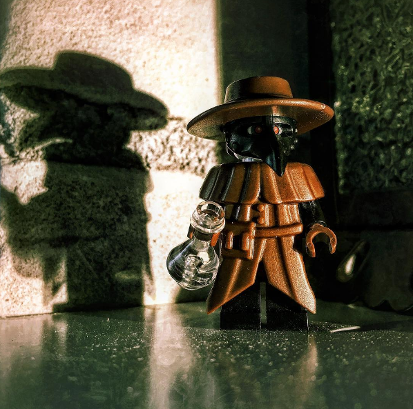 Well, would you take treatment from a person dressed like that? When it came to the bubonic plague, and with large percentages of the entire population dying, people willingly did! Here, creator dejimusprime's minifigure is dressed from head to toe in Plague Doctor gear, from his Plague Doctor Hat and Plague Doctor Mask down to his Plague Doctor Coat, while he carries a homemade remedy in his hand. I love the ominous shadow on the wall juxtaposed against the actual figure itself and the background of rock makes it seem like this is straight out of the Middle Ages. Fabulous custom minifigure!